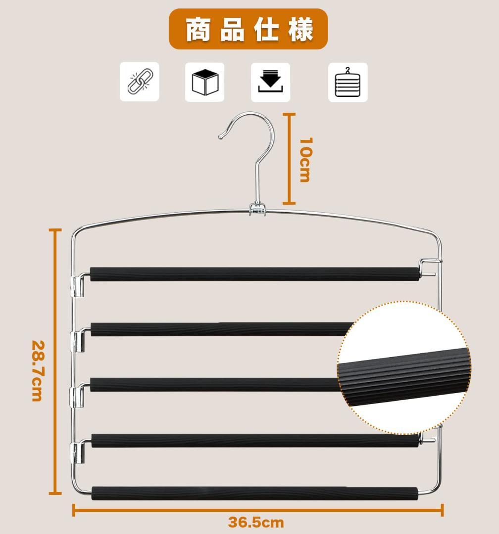 ズボンハンガー 回転可能 4本セット 5段 クローゼット 衣類