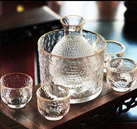 【耐熱ガラス、熱燗対応】耐熱ガラスを採用し、外のボウル容器にお湯をを入れて、やわらかで美味しい【ぬる燗】も作れます。冬で一カップで、身体が暖かくなります。お酒の席に彩りを添える、涼しげでおしゃれなデザインの酒器セットです
