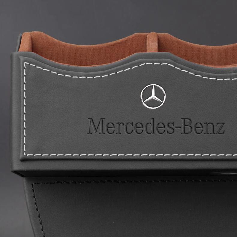 ベンツ ロゴ付き隙間用多機能収納ボックス黒白シートポケット2点セット