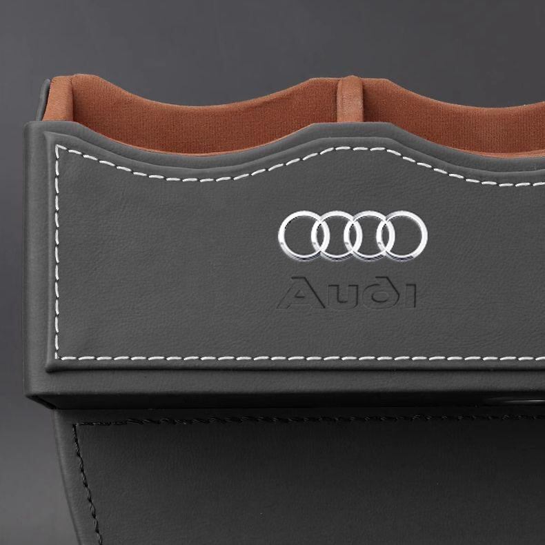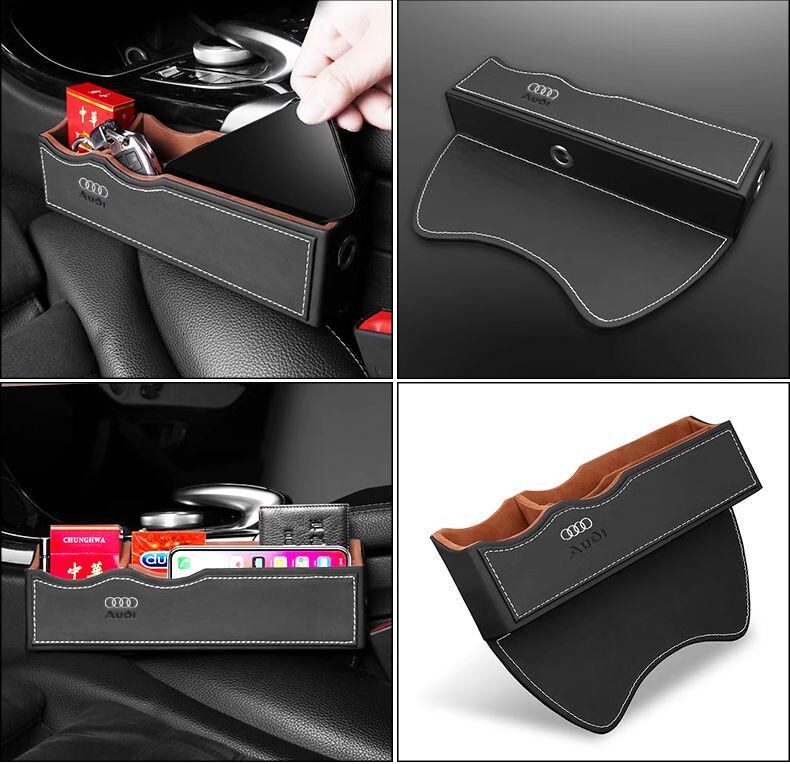 Audi ロゴ付き隙間用多機能収納ボックス黒白シートポケット2点セット