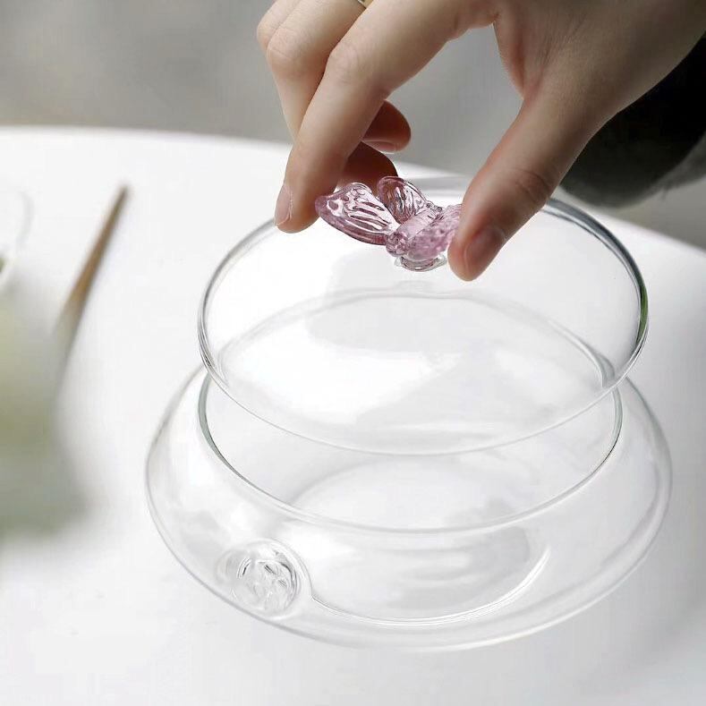 高級 手持ちティーポット 冷泡茶 氷だし 冷茶 宝瓶 ガラスサーバー 蝶