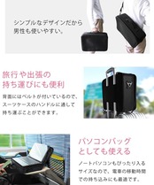 ノートパソコンもぴったり入るサイズなので、ビジネスバッグ、パソコンバッグとして、電車の移動時間での持ち込みにも最適です。