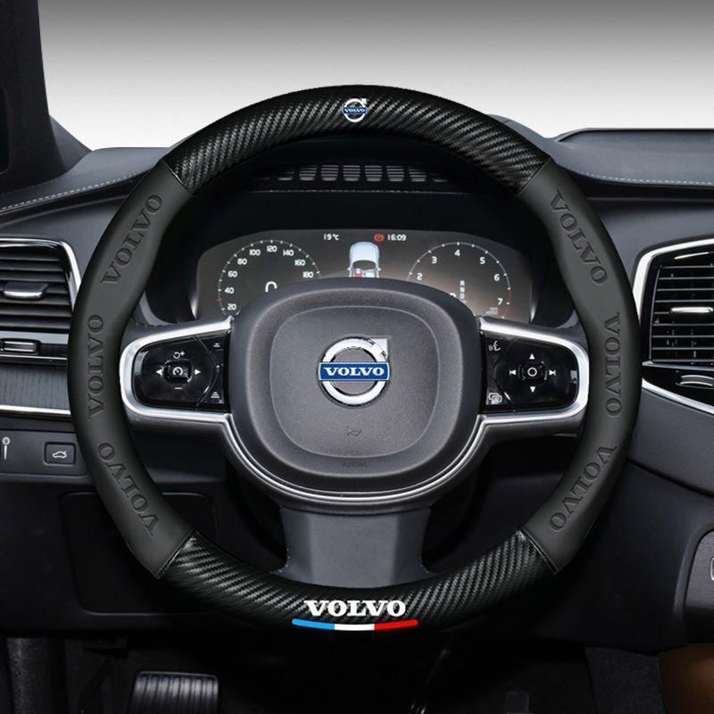 ボルボ専用 ハンドルカバー ステアリングカバー 円型 本革 カーボン
