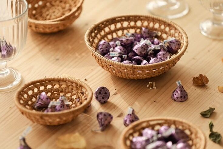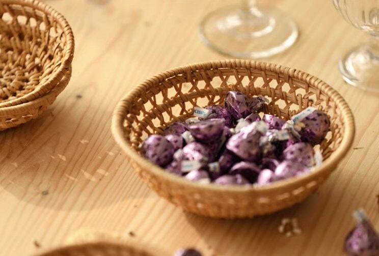 アラログ 籐 透かし 編みバスケット みかんかご 小ぶりサイズ