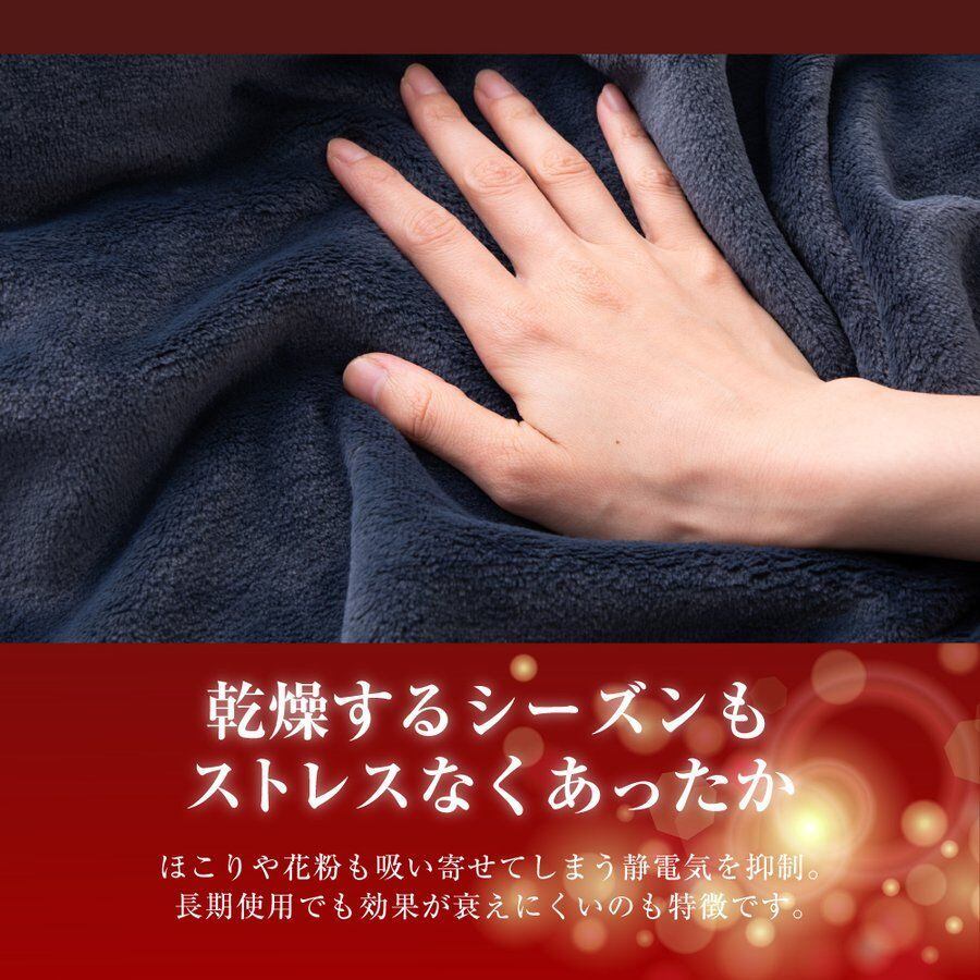 静電気防止加工を施しているので、マイクロファイバー毛布特有のバチバチとした静電気も発生しにくく嫌な不快感もありません。(強い摩擦を受けると静電気が発生する場合があります。)