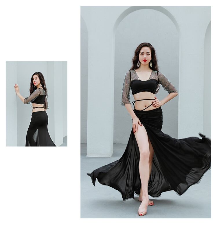 オリエンタルダンサーの魅力を最大限に引き出す、ラインストーンが施されたベリーダンス衣装の登場です!オーディションやパフォーマンスショーでキラキラと輝く姿を披露しましょう。ダンスに憧れるあなたへ、自信と輝きを与える衣装です。