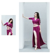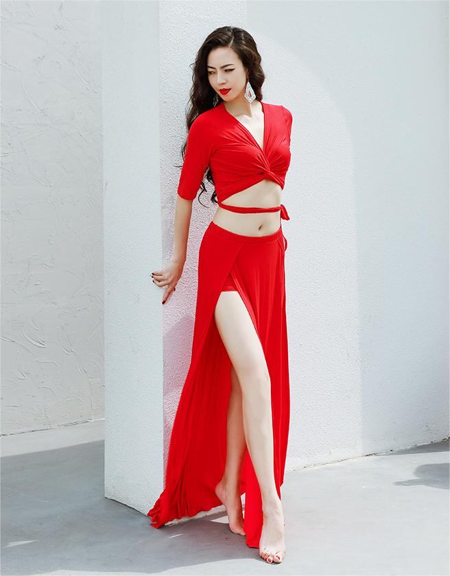 ステージウェアラッフルモダンダンスアーバンラテン服女性のためのソリッドカラーハロウィーンコスチュームエジプトの腹スーツジャズスプリットクラシック