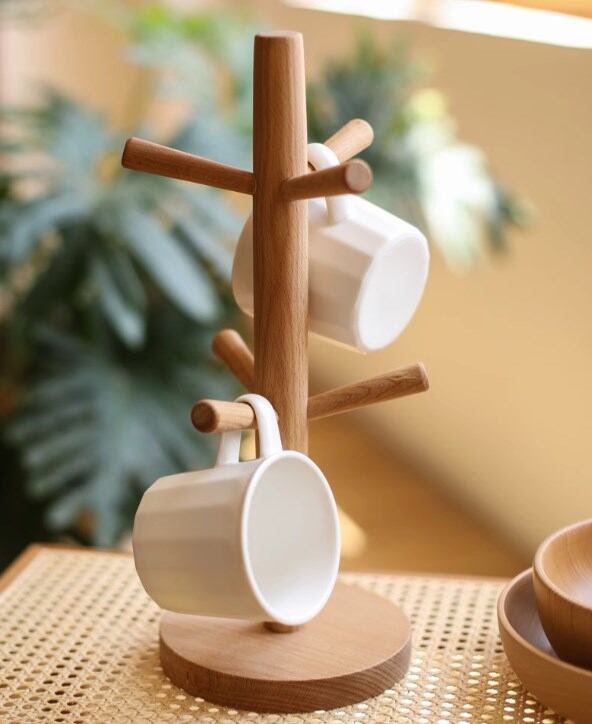 プレミアム素材:高品質のブナ材で作られたマグツリー、100%環境に優しく磨かれた滑らかな角。
