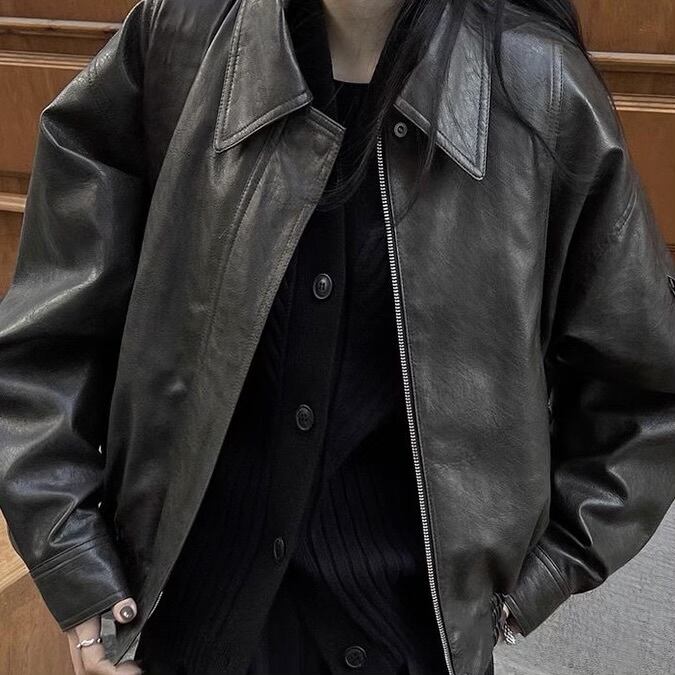 レザージャケット ショート バイク ジッパー レトロ クール 2色