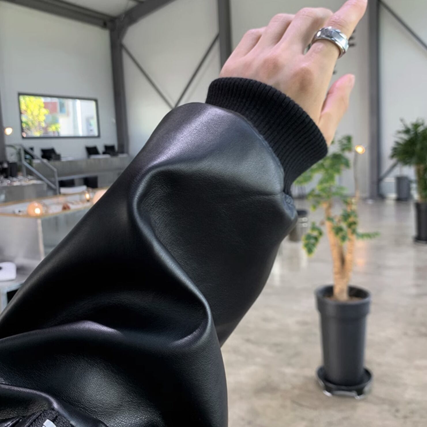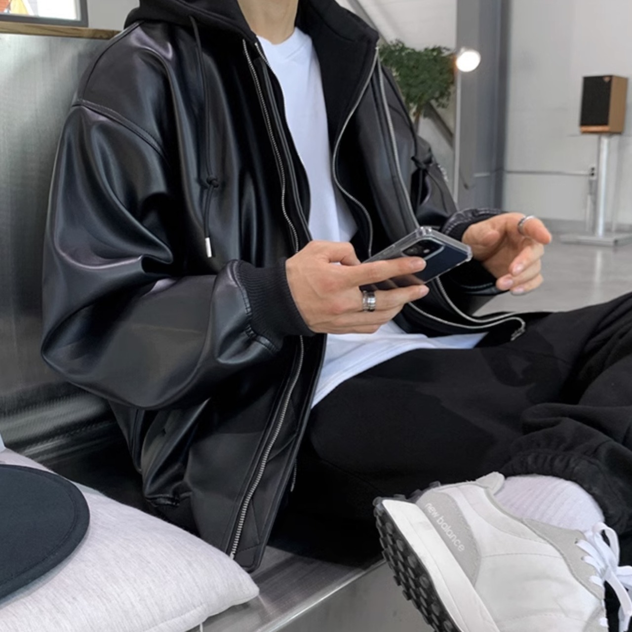 レザージャケット 重ね着風 フード パーカー バイク クール 大人
