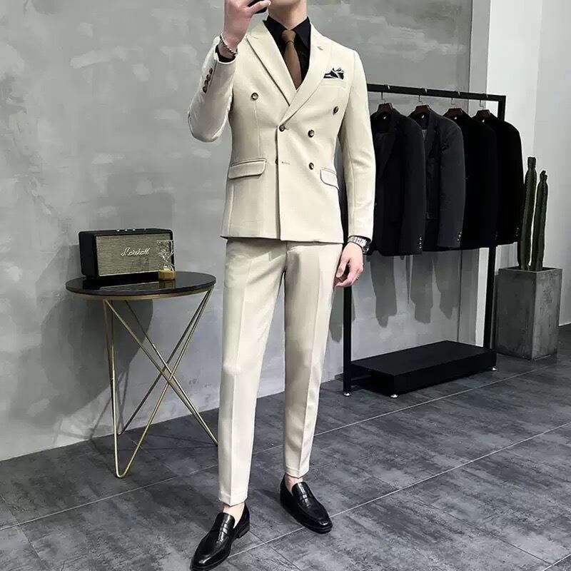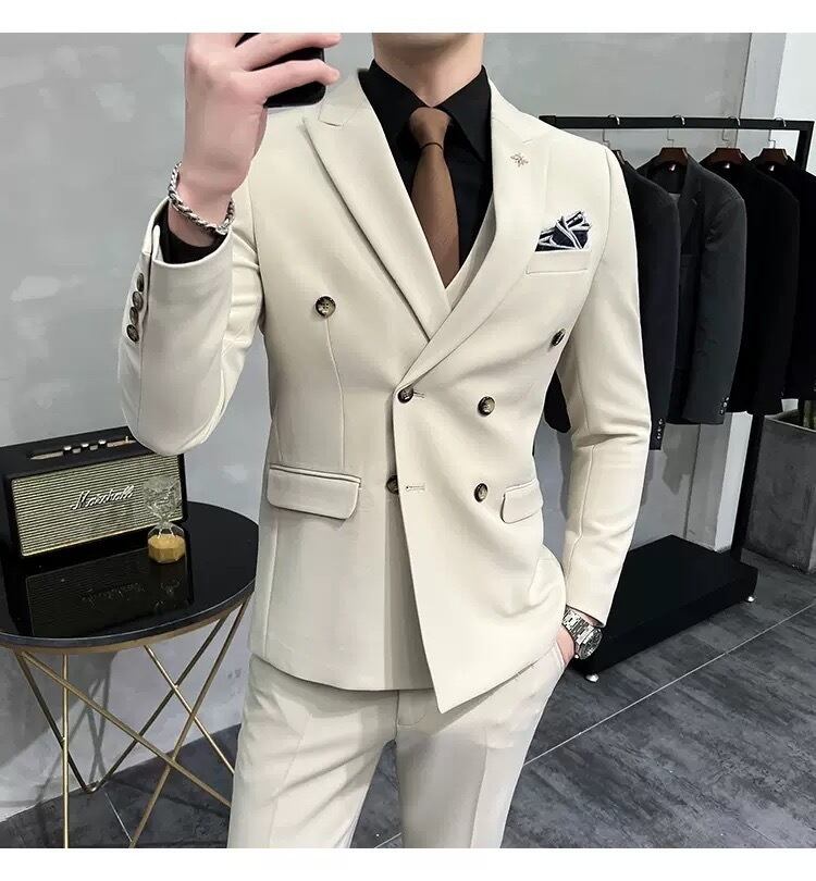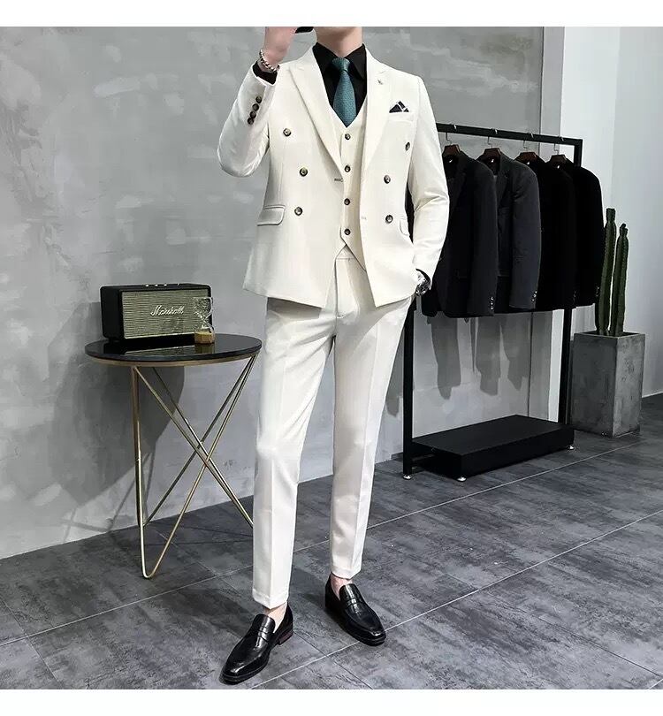 3色 4点セット ダブルブレストスーツ スリムフィット ドレス