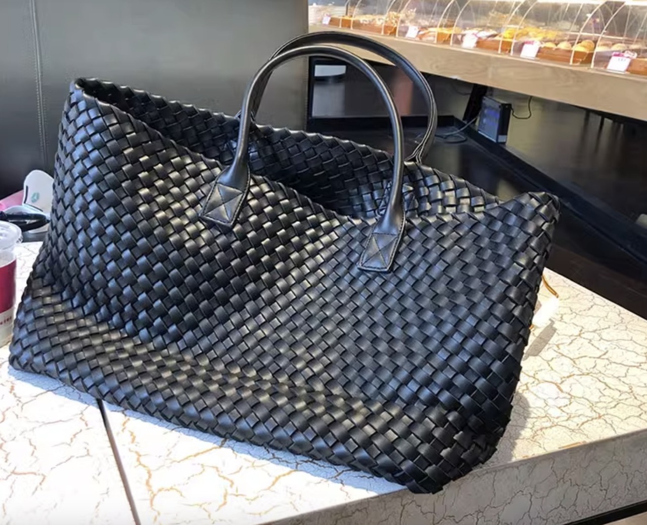 トートバッグ 手織り シンプル 大容量 お出かけ 大人 上品 3色