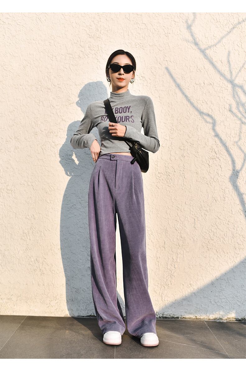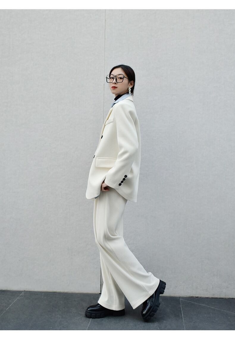 ツーピース パンツスーツセット ワイドレッグ コーデュロイ 3色