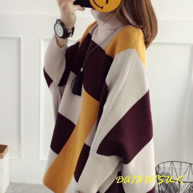 セーター ロング タートルネック エレガント 格子 2色 韓国