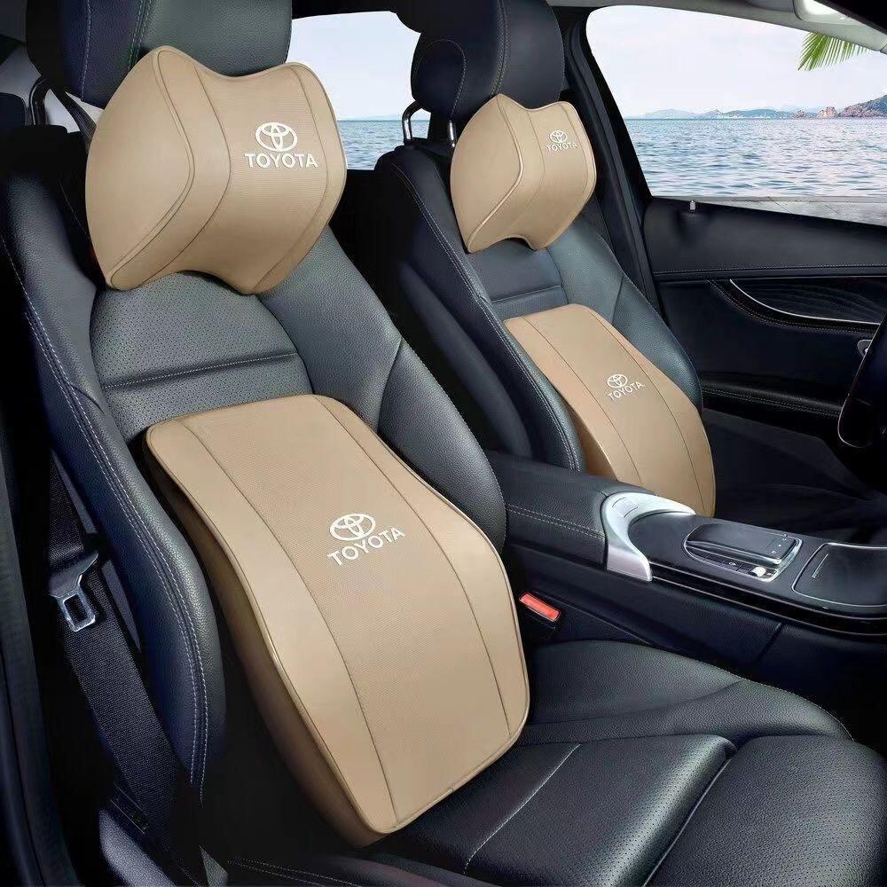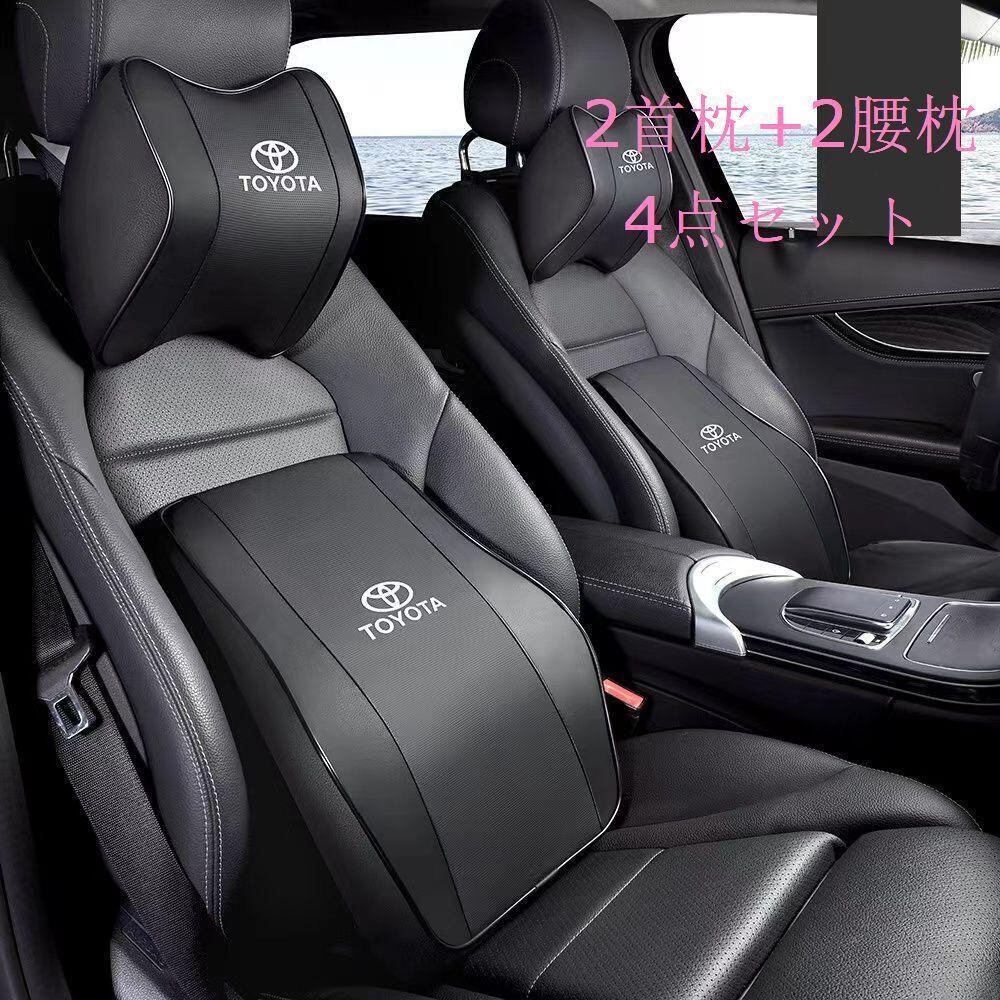 茶色TOYOTA 自動車2首枕+2腰枕 組み合わせ 疲労軽減 通気 4点セット