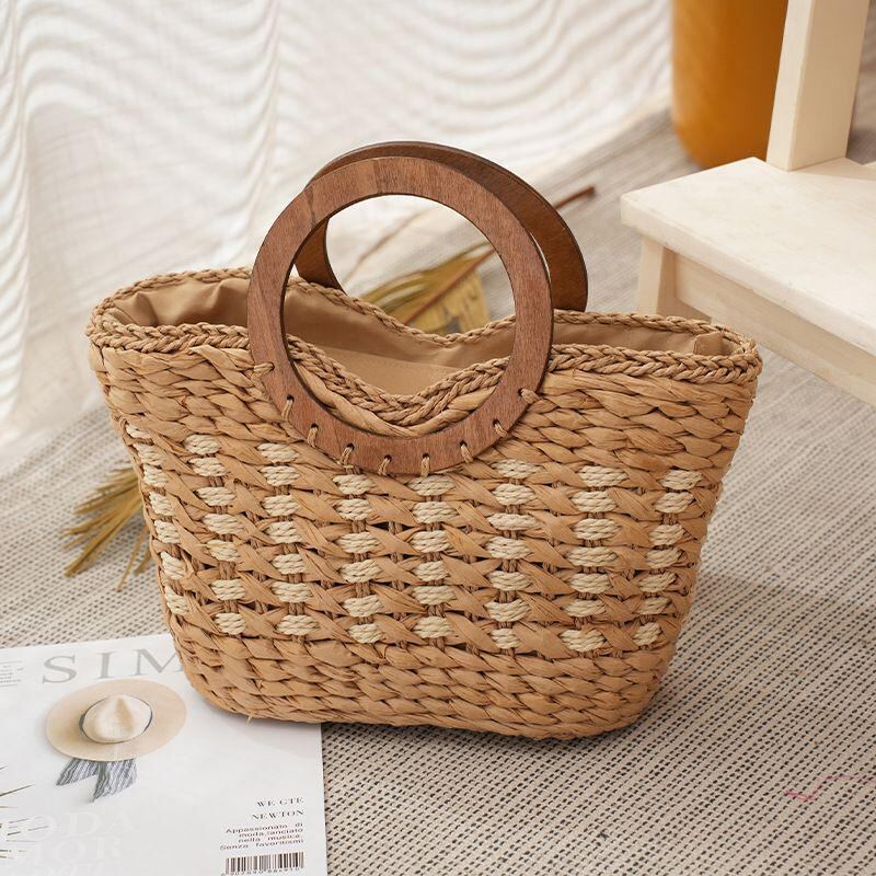 レディースニットバッグ草編みバッグハードハンド編みバッグおしゃれなハンドバッグ