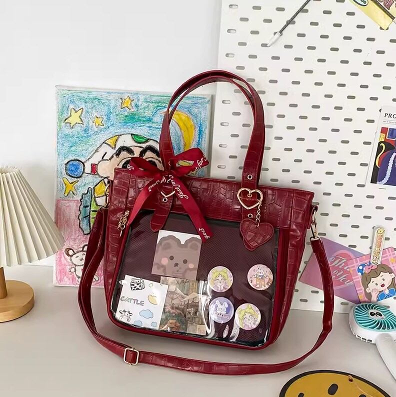 痛バッグ クロコ 2WAY かわいい A4トートバッグ ハンドバッグ ショルダー ショルダーバッグ トート 可愛い おしゃれ 上品 大容量 クロコ柄 黒 白 赤 ブラック ホワイト レッド 痛バ いたばっぐ いたばっく 推し活 ハート リボン