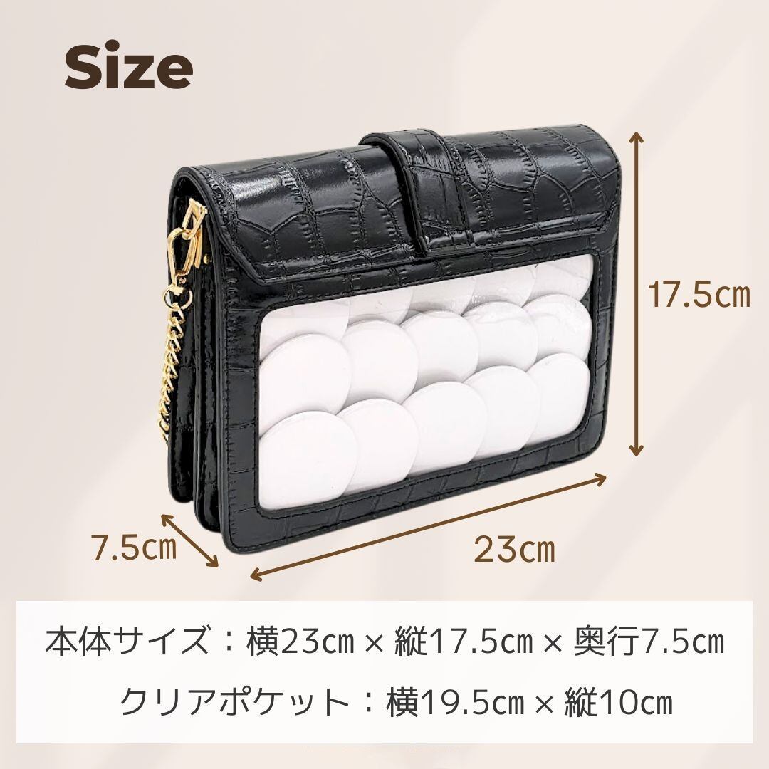 痛バッグ ショルダー 痛バ 痛バック ショルダーバッグ クロコ かわいい 黒 ブラック 白 ホワイト クロコ柄 推し活 オタ活 バッジ 透明 クリアバッグ トレンド プレゼント