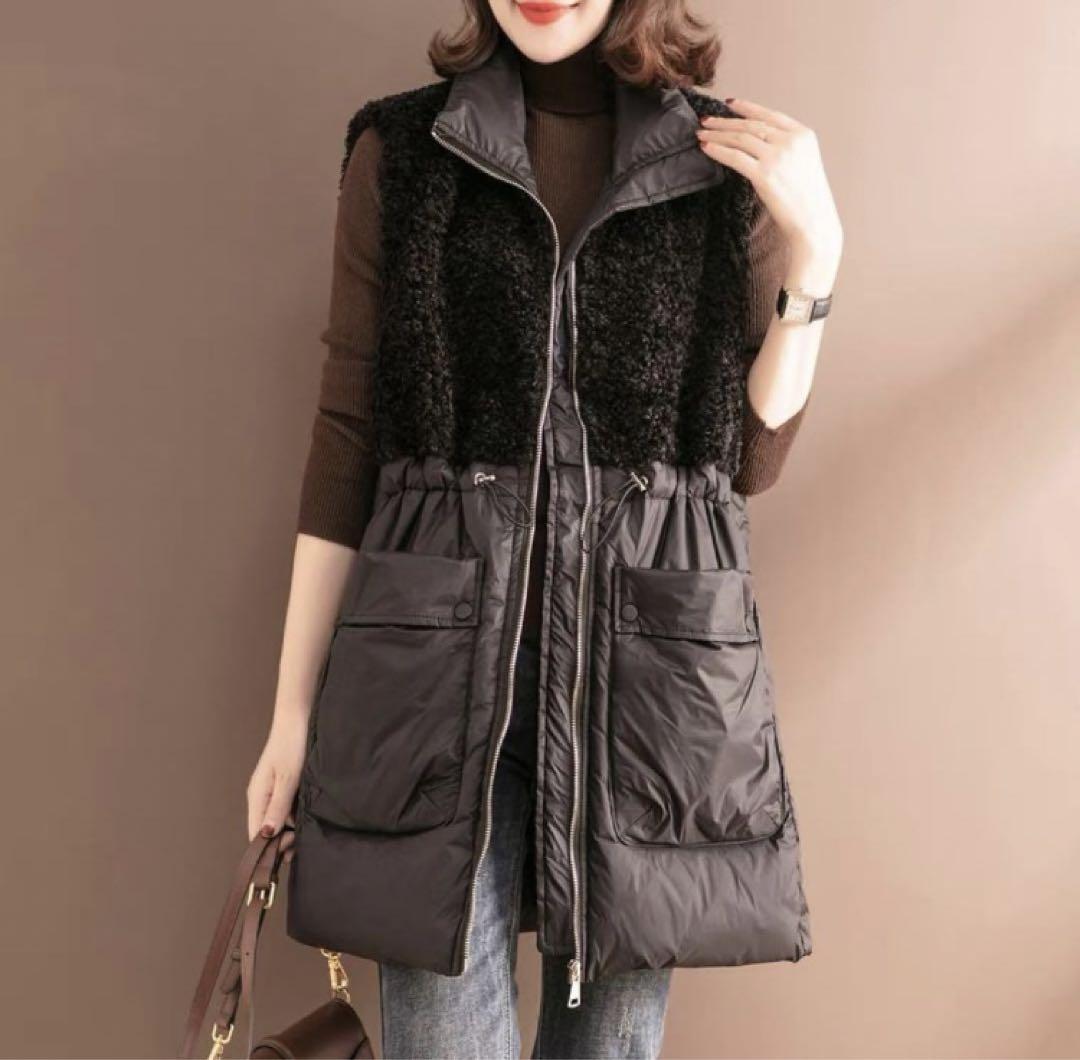 秋冬コーデ ダウンベスト レディース ロングジャケット ボア プードルベスト