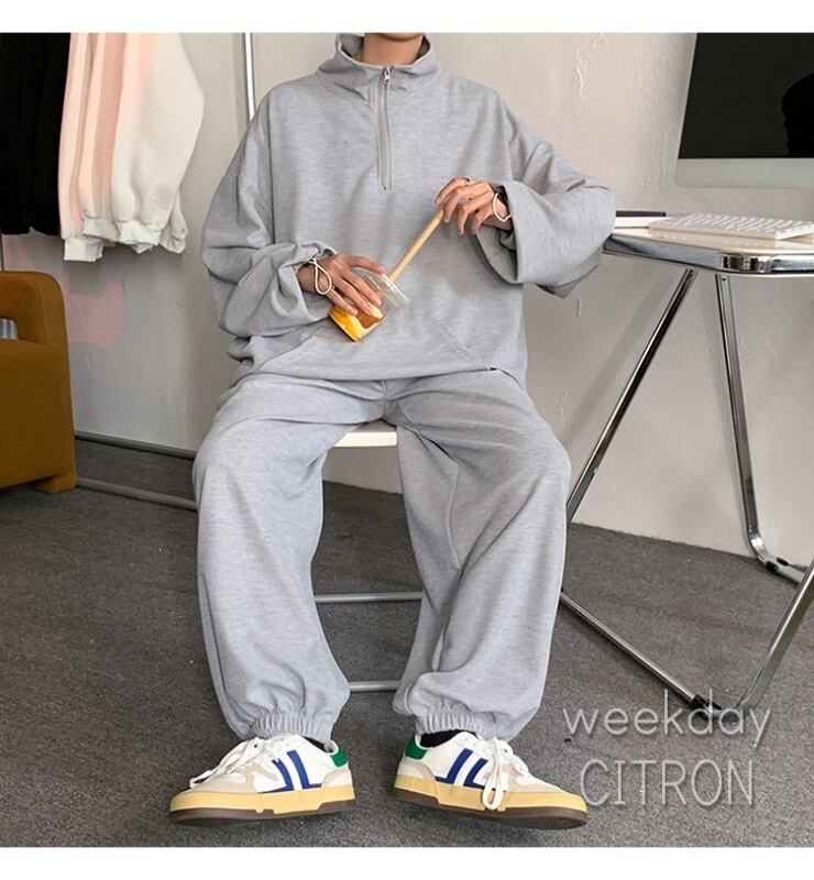 セットアップ ハーフジップ ワッフル トップス × パンツ
