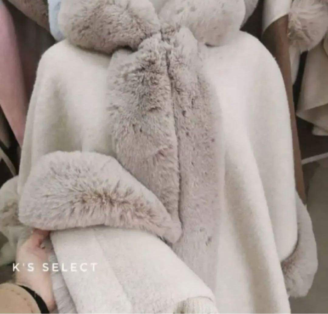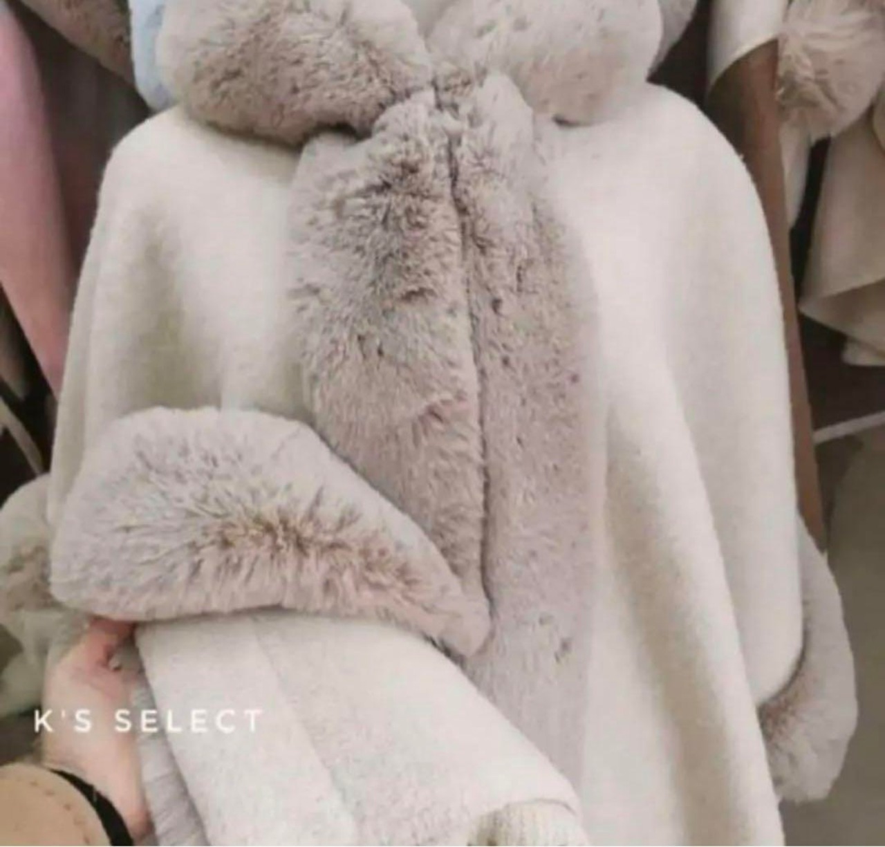 毛皮 ファーコート レディース ファー付きポンチョ アウター 裏起毛 新品