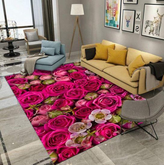 ラグ 洗える ラグマット カーペット 北欧 滑り止め 抗菌 180x280cm 薔薇柄
