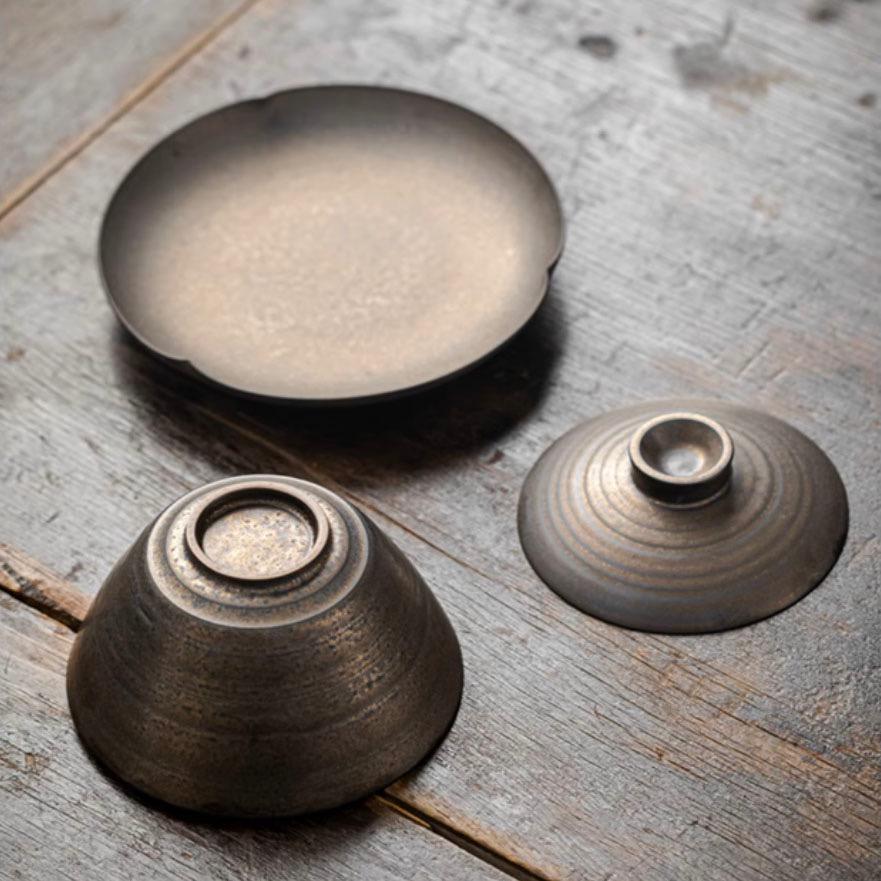 茶器 1380℃高温焼成 台湾茶 中国茶器 煎茶 蓋付き三才碗 200ml 蓋碗 鉄釉薬