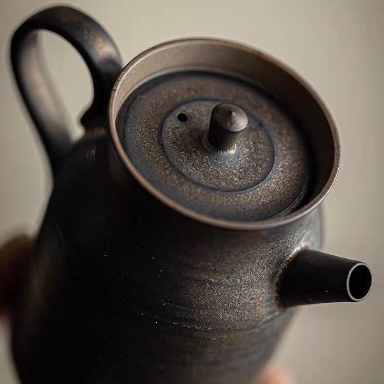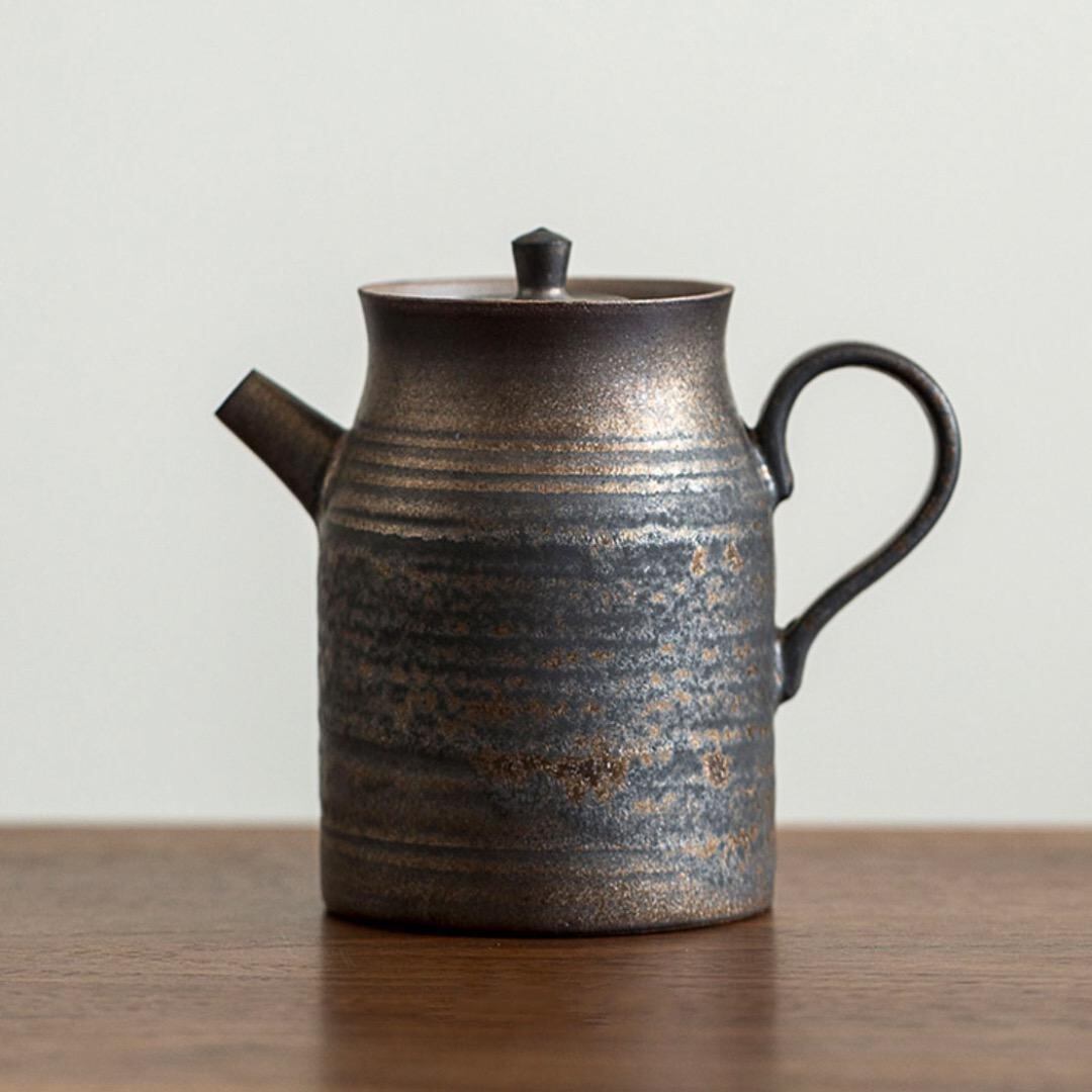 円筒壷 1380℃高温焼成 鉄釉薬 急須 160ml 円筒壷 鉄釉薬