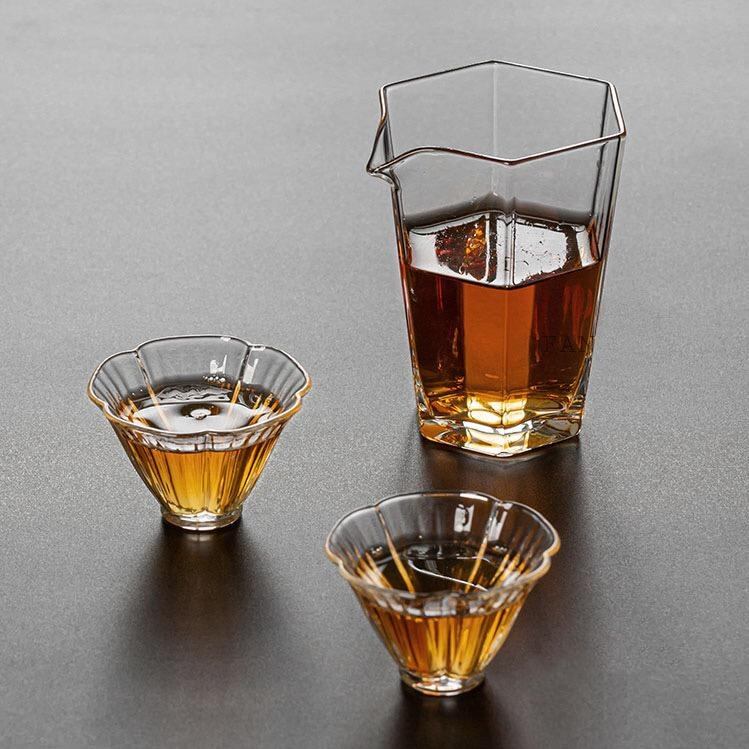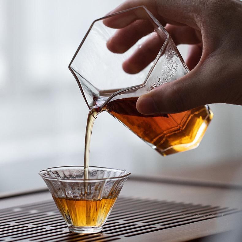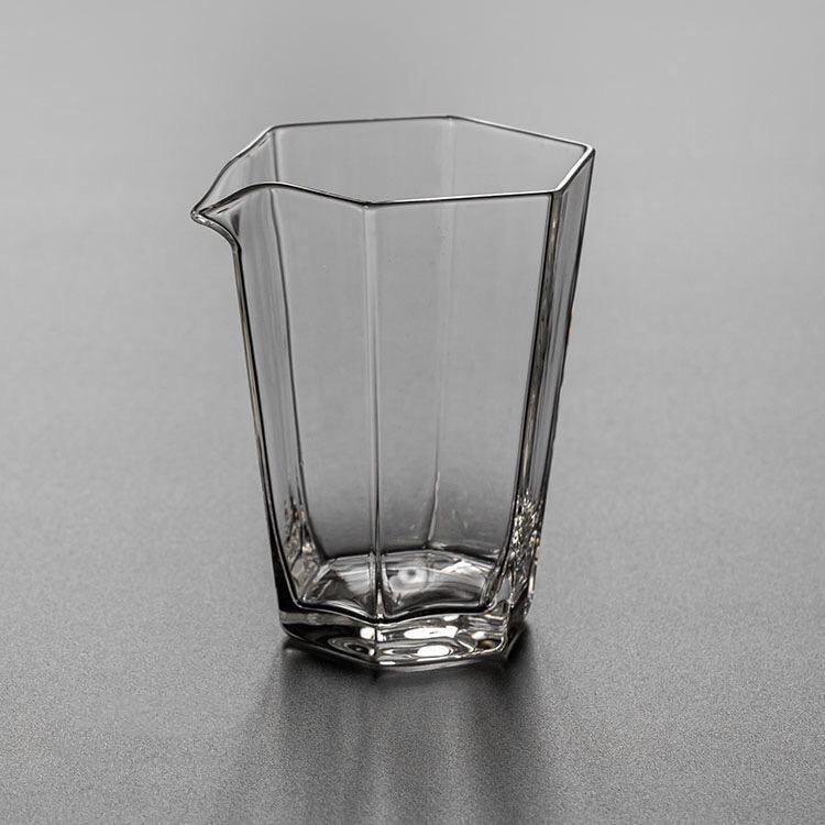 手作り 耐熱ガラス 公道杯 茶海 湯冷まし 片口酒器 均杯 透明 六角