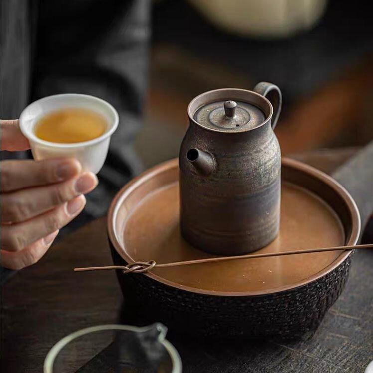 円筒壷 1380℃高温焼成 鉄釉薬 急須 160ml 円筒壷 鉄釉薬