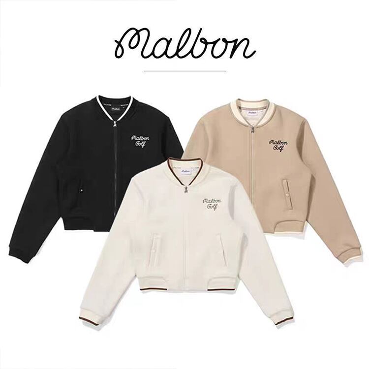 malbon golf マルボンゴルフ スタジャン ブルゾン ゴルフウェア 男女兼用 アウター スポーツ ショート丈 カジュアル 防寒 暖かい ジャケット ホワイト ブラック カーキ