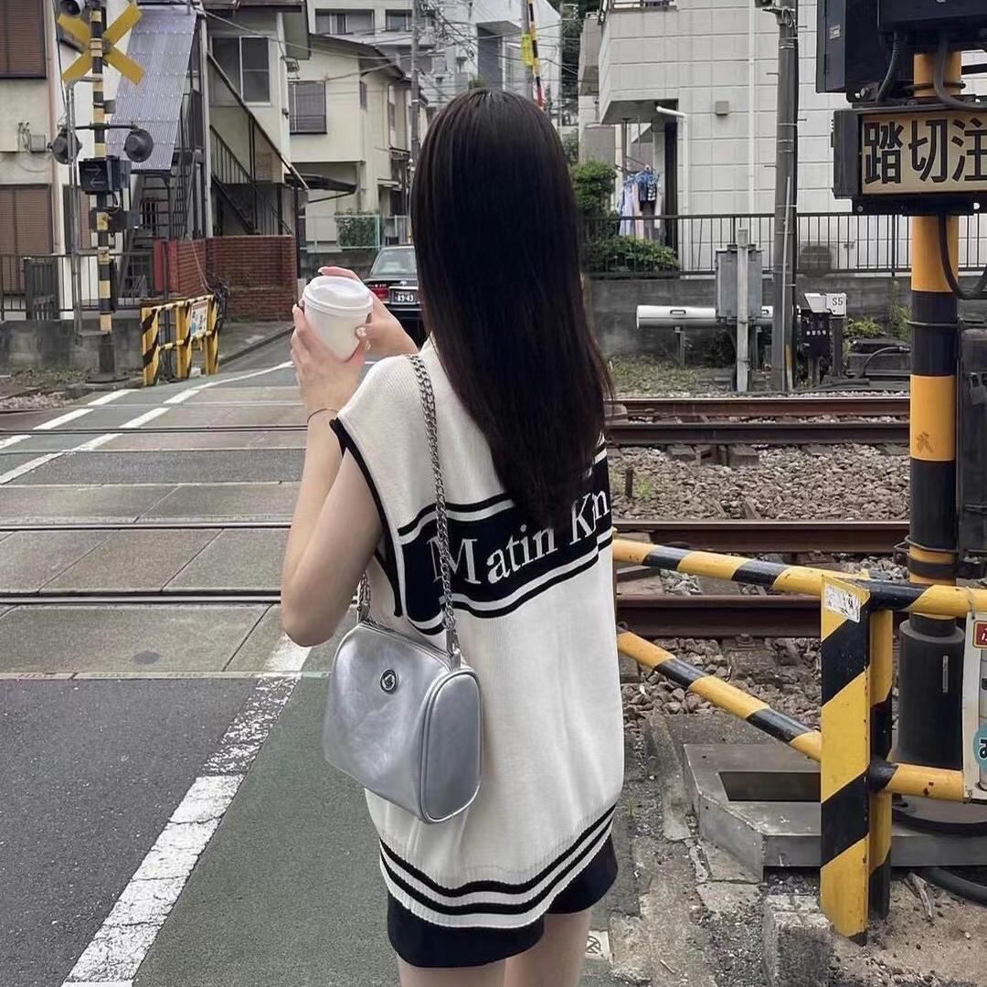 Matin Kim マーティンキム ニットベスト ストライプ 韓国 カップル ニットベスト レディース メンズ 防寒 暖かい ホワイト ブラック 2色