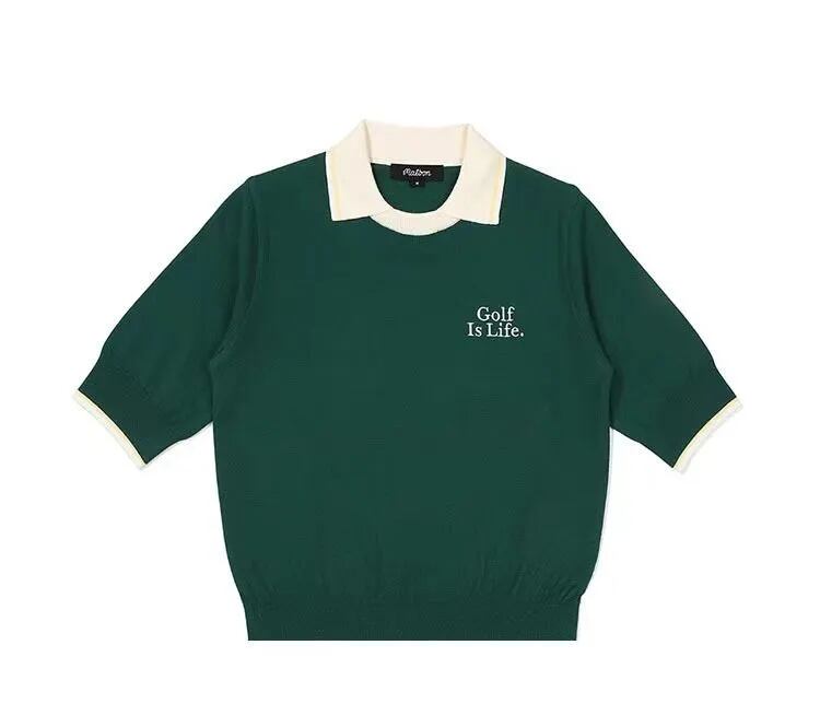 【今期新作】 malbon golf マルボンゴルフ LOGO 刺繍 ロゴ ポロシャツ レディース ゴルフウェア 韓国 ゴルフ ゆったり カジュアル 半袖 Tシャツ 3色 大人気