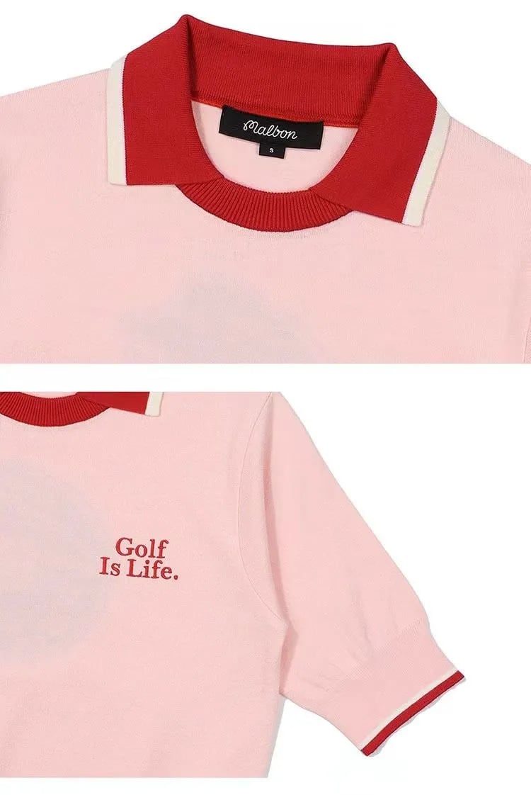 【今期新作】 malbon golf マルボンゴルフ LOGO 刺繍 ロゴ ポロシャツ レディース ゴルフウェア 韓国 ゴルフ ゆったり カジュアル 半袖 Tシャツ 3色 大人気