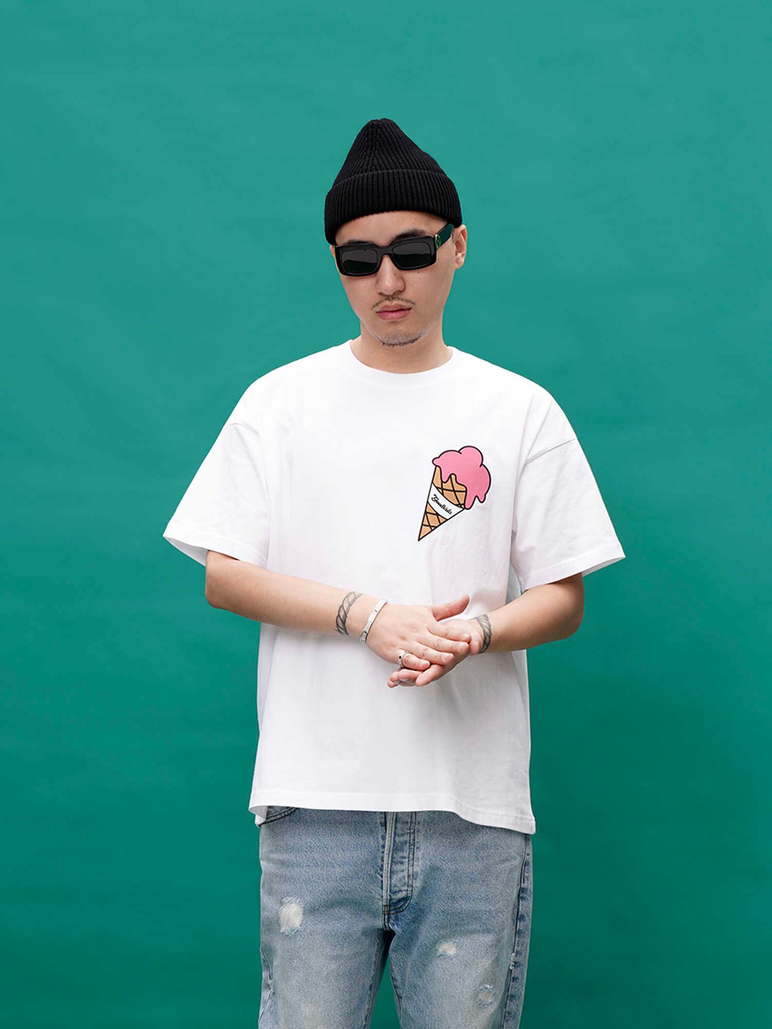 AFGK A FEW GOOD KIDS アフューグッドキッズ アイスクリーム ロゴ 半袖 Tシャツ ゆったり カジュアル サークル プリント ロゴ 半袖 Tシャツ 大人気 男女兼用 タグ付き