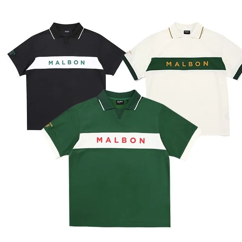 【限定価格】 malbon golf マルボンゴルフ LOGO ロゴ ポロシャツ 半袖 Tシャツ メンズ 韓国 ゴルフ ゆったり カジュアル シンプル ポロシャツ 3色
