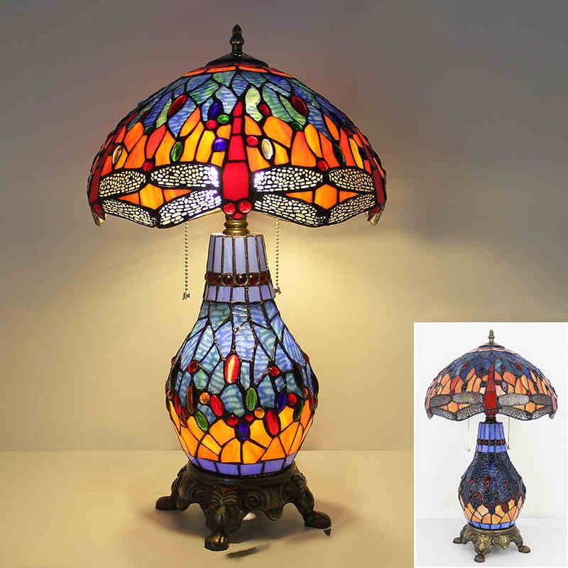 大人気ステンドグラス ランプ スタンド フラワーズ トンボ模様 ライリー LED球使用 喫茶店 グラスランプ ガラス照明 贈り物 ステンドランプ テーブルランプ ランプシェード ステンドグラス