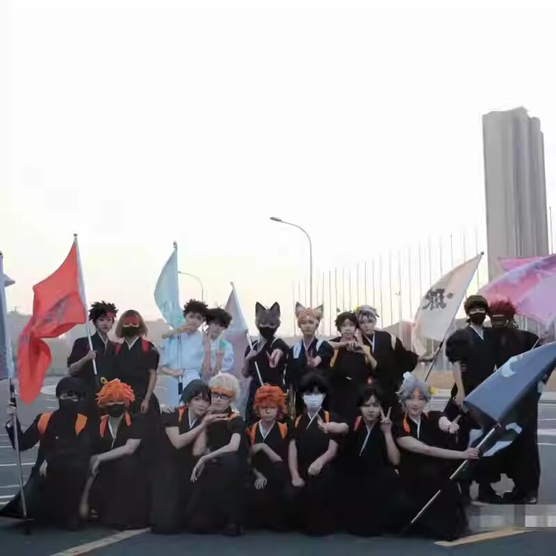 ハイキュー 風 音駒高校 排球部 応援団服 和服 黒尾鉄朗 孤爪研磨 コスチューム コスプレ衣装 5点セット