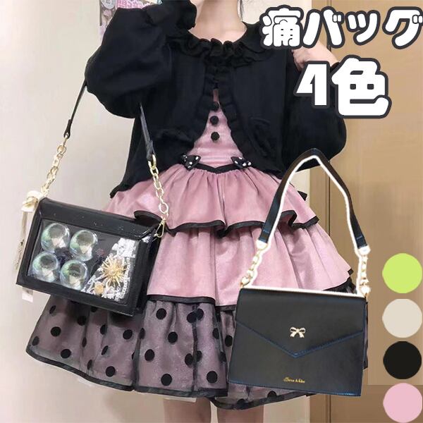 痛バッグ 小さめ 痛バ ショルダー 痛バック ミニ いたばっく ショルダーバッグ かわいい おしゃれ 大人 ポーチ クリアバッグ 透明 ホワイト ブラック グリーン ピンク 4色