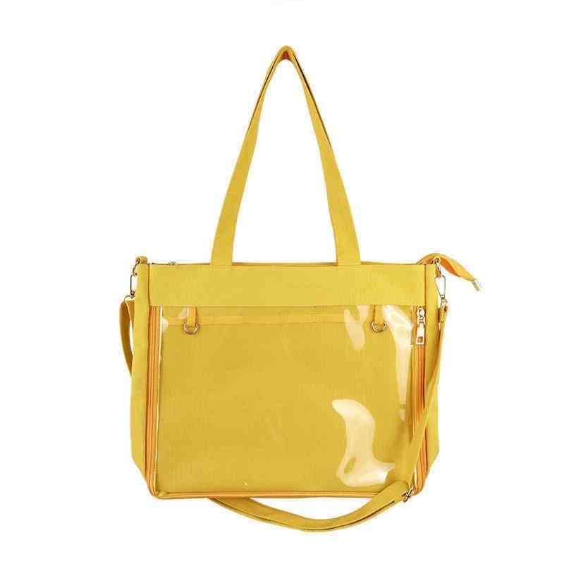 痛バッグ ショルダーバッグ 2way ぬいぐるみ ショルダー バッグ クリアバッグ 肩掛け A4 ハンドル ビニール 透明窓 おしゃれ ブルー 缶バッジ キャンバス地