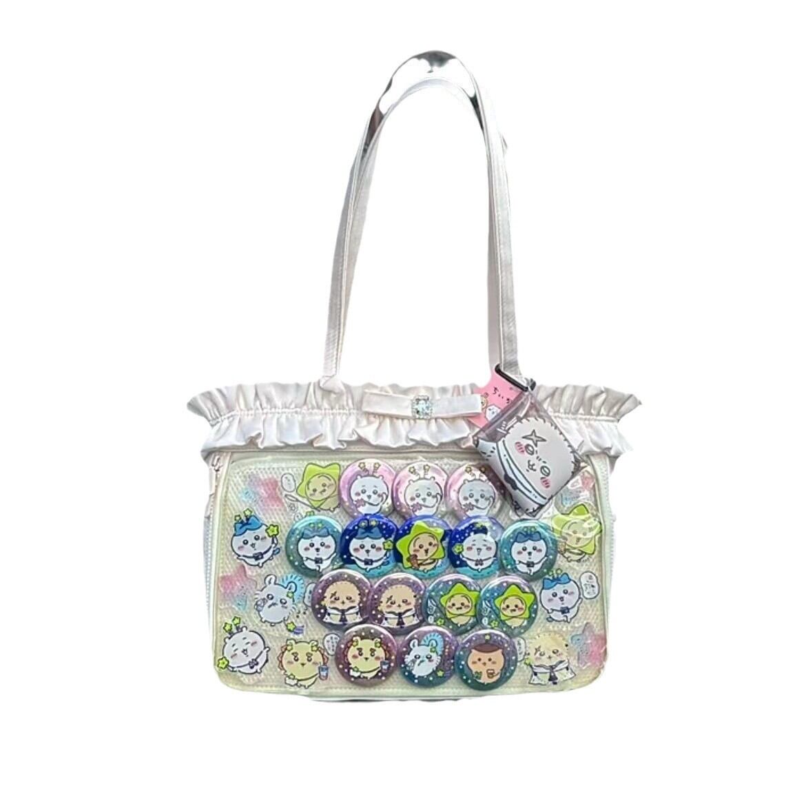 ◎ 推しの写真、缶バッジ、アクスタなどを入れて自分の好みの推し活バッグにアレンジしてください♪ 缶バッジ装飾用のメッシュシートも付属します!