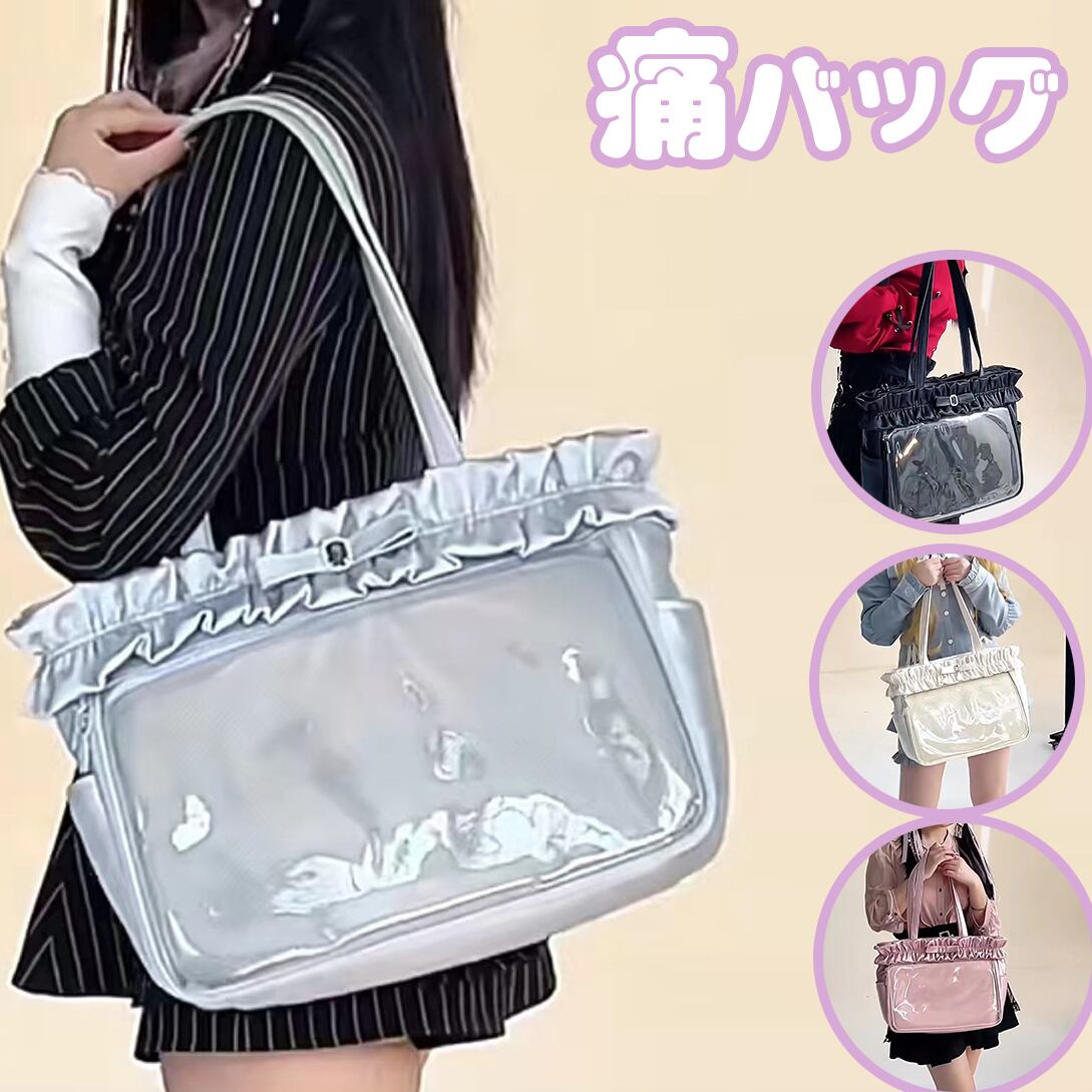 痛バッグ トート フリル レース リボン 痛バ A4 痛バック トートバッグ 推し活バッグ いたばっく いたば 推し活 バッグ 肩掛け ブラック ホワイト ピンク ブルー 人気 おしゃれ かわいい