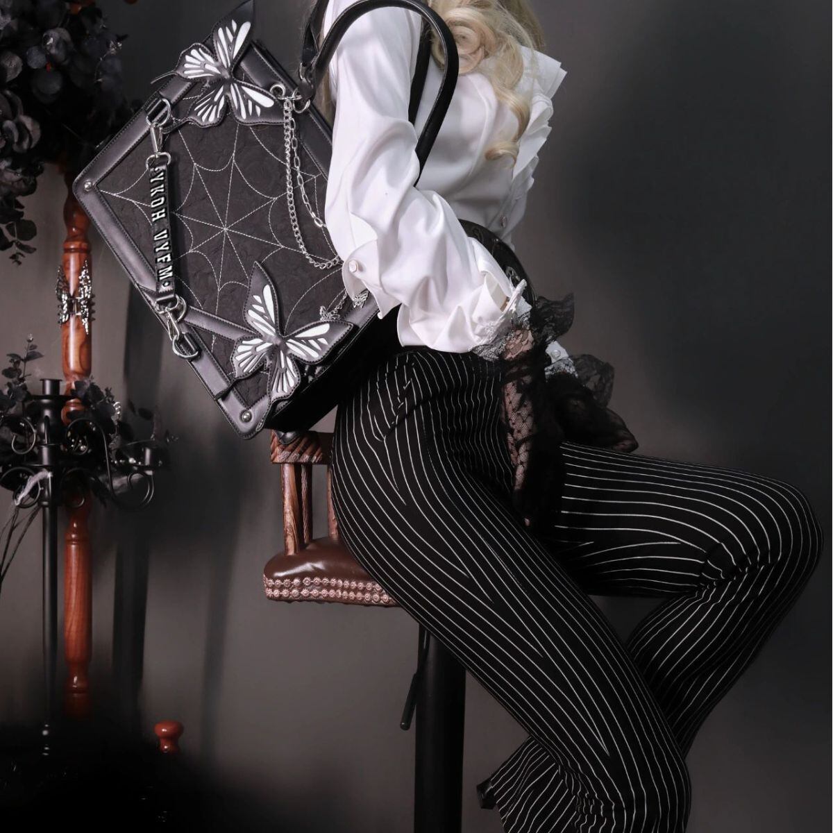 痛バッグ 痛バ 蝶 ゴシック トート 蜘蛛の巣 バタフライ アゲハ くもの巣 2WAY 推し活バッグ いたばっく いたば トートバッグ ハンドバッグ 6色