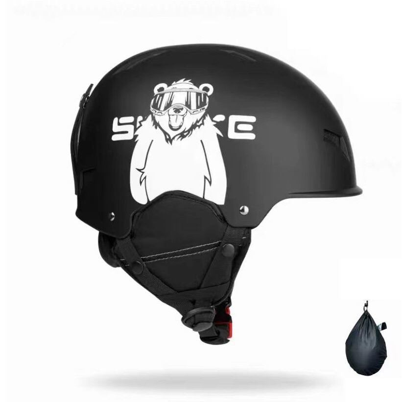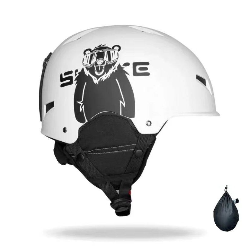 スキーヘルメット こぐま模様 ヘルメット バッグ付き バイク スノーボード 防寒 スキー プロテクター メンズ レディース サイズ調整 ヘルメット スノー スノボ スケート スケボー ホワイト ブラック 2色