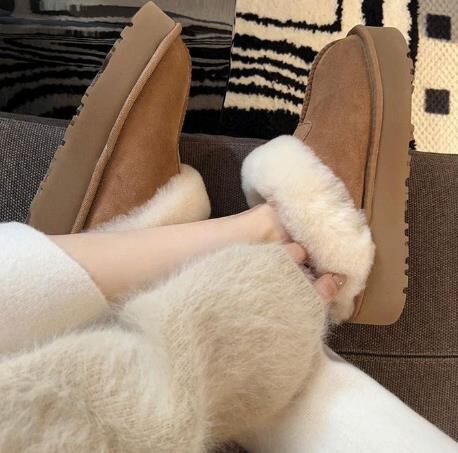 撥水加工が施されており、雪や雨の日でも安心して履けるデザインです。