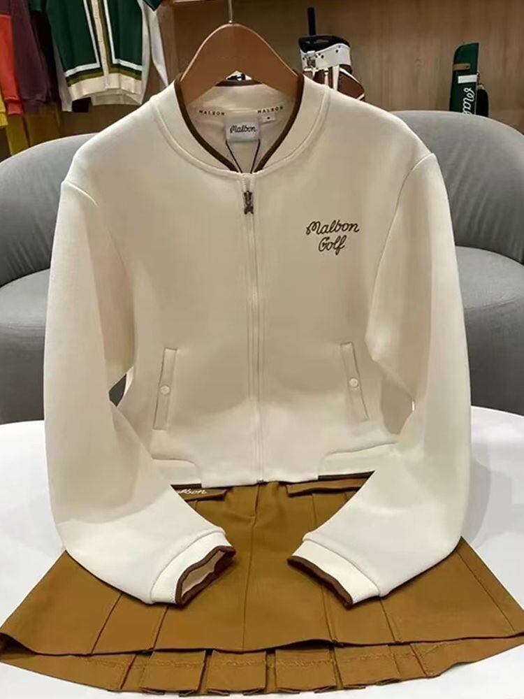 Malbon golf マルボン ゴルフ ジップアップ ジャケット レディース ゴルフウェア エアリー クロップ トップス ブラック ベージュ カーキ 3色