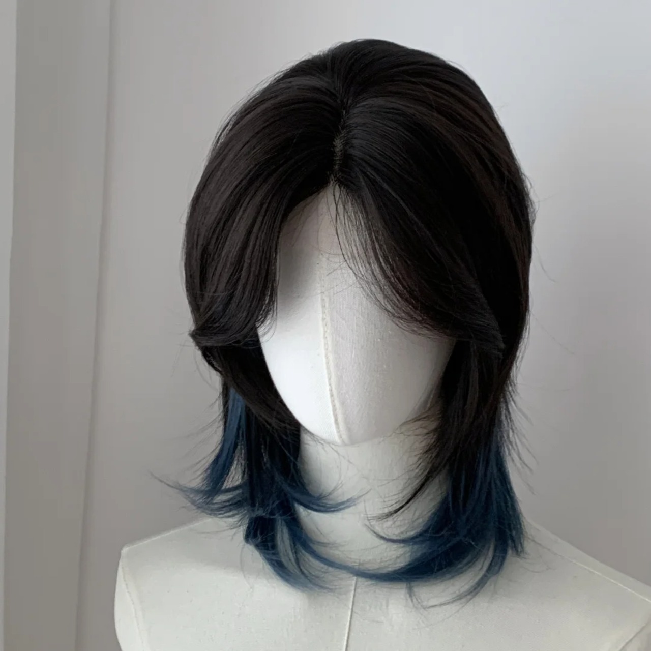 2色グラデ ウィッグ ブラックネイビー グラデーション グラデーション コスプレ 上質人工毛 ストリートファッション フルウィッグ
