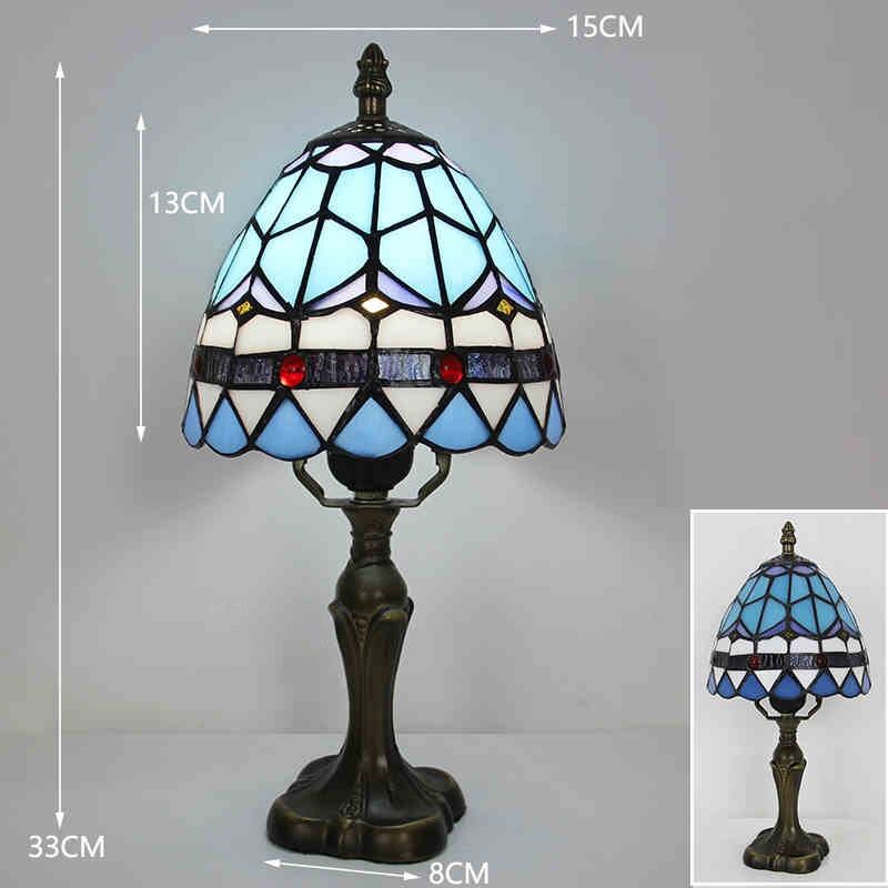 ステンドグラスランプ LED ガラス工芸 卓上ライト デスクライト ブルー 電気スタンド 照明 おしゃれ 安い 北欧 アンティーク風 プレゼント