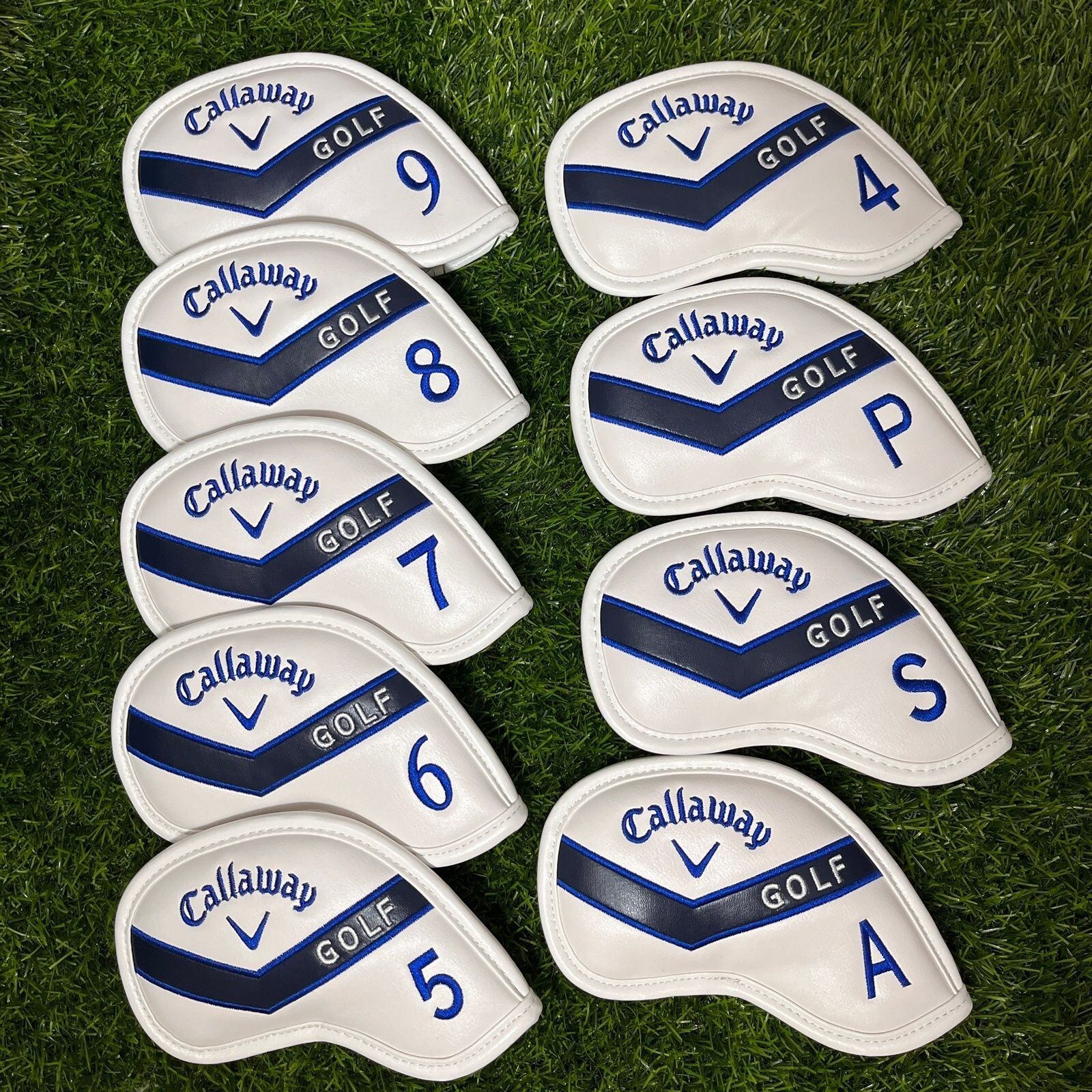 送料無料 CALLAWAY GOLF キャロウェイゴルフ アイアンカバー マグネット吸着 ヘッドカバー 10枚セット ゴルフ クラブ ヘッドカバー ホワイト×ブルー
