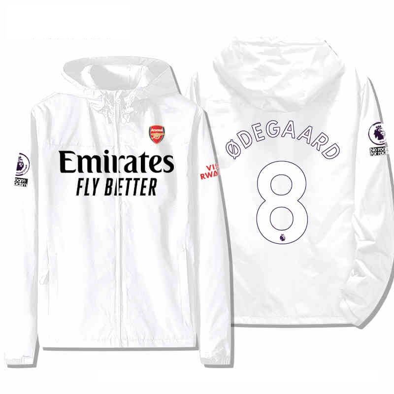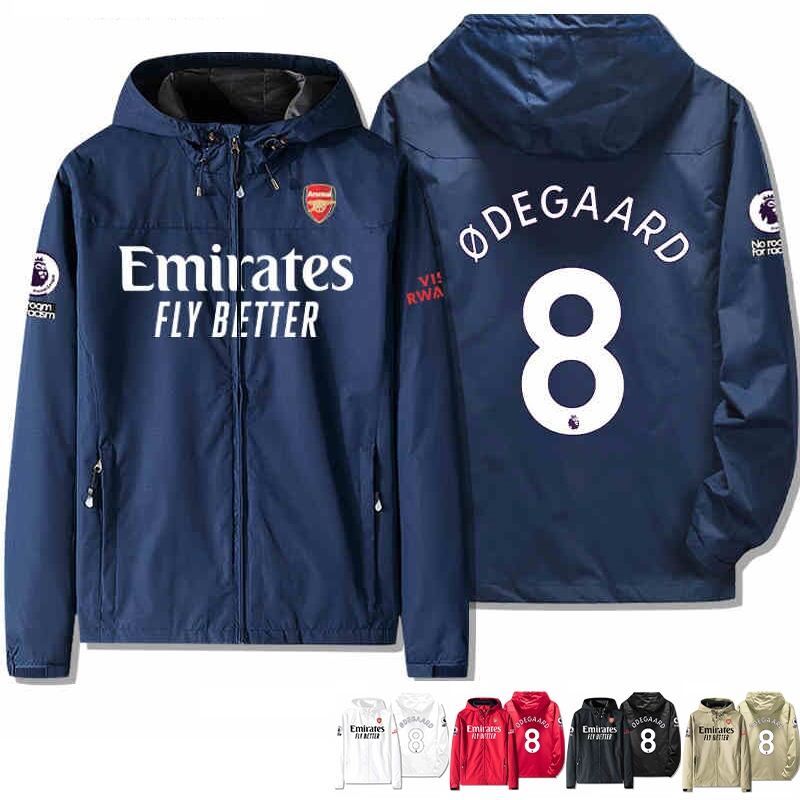アーセナルFC ジャケット スレーシング ウーデゴール 8番 ファン用ジャケット 冬服 バイクウエアグッズ 防風 長袖ジャケット アウトドアスポーツウェア 釣り服 ブラック ホワイト ネイビー カーキ レッド 5色